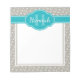 Stylish, trendy grey and white anchor pattern in the background, topped with a bright teal blue label featuring a customisable name and monogram template.