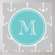 A preppy, nautical, grey or grey and white anchor pattern with your initial in a modern font, on a teal circle label, banner, frame with white circular lines border. GraphicsByMimi© Trendy, stylish, modern, cute anchors pattern you can personalise with your monogram for her. Use the template field to add your monogram initial or letter or select “customise it” for more editing options like adding your name, text or photo to make your own, unique, personalised, one-of-a-kind custom design. Other colours available.
