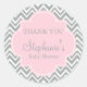 Grey and white chevron pattern with pastel pink accent baby shower thank you sticker. Grey and white zigzag and in the middle there is a pastel pink rectangle with your custom text.