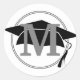 Grey White Black Graduation Cap Monogram Initial Classic Round Sticker