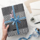 Grey White Black Greek Key Fret Pattern Design Wrapping Paper