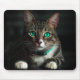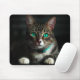 Grey & White Cat with Blue Eyes & Matching Collar Mouse Mat