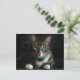Grey & White Cat with Blue Eyes & Matching Collar Postcard