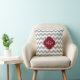Grey White Chevron Burgundy Quatrefoil 3 Monogram Cushion