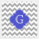 Grey White Chevron Cobalt Blue Quatrefoil Monogram Square Sticker