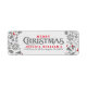 Cute grey with red accents christmas wreath illustration over customisable white background colour. Suggested grey and red font colour. Fully customisable round christmas return address label.
