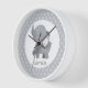 Grey and White Mod Elephant Nursery Wall Clock You can customise the name, makes a great nursery or baby shower gift. Would look great in any baby boy or girl nursery, toddler room, playroom or bathroom! Our original artwork is a fun way to decorate any child's wall.