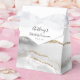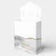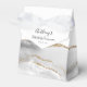 This elegant modern favour box features a grey and white watercolor agate design trimmed with gold faux glitter. The words "First Holy Communion" appear in charcoal grey handwriting script on a white background. Personalise it with your child's name, along with the date below.