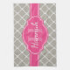 Grey White Lattice Pattern Pink Monogram Tea Towel