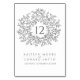 Circling leaf design monogram wedding table numbers. Add your own table numbers on by one, name and wedding date in grey on a white background. Other colours and matching wedding items available. © Original leaf drawing and design by Sarah Trett for www.mylittleedenweddings.com on zazzle.