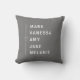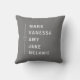 A minimalist pillow in a lovely fresh grey colour with white text, featuring up to 5 family member names with a line and heart border to the left. If you wish to have fewer names, you can edit via the design tool and remove any extra names.