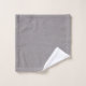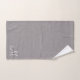 Personalised grey and white monogrammed bath towel set with a script font on a grey faux linen background. Simple elegance. Refresh your bathroom decor with a minimalist typographic style.