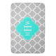 Grey and White Moroccan Quatrefoil Trellis Pattern #5, Bright Aqua Quatrefoil 3 Initial Monogram Label