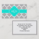 Grey White Moroccan #5 Brt Aqua 3 Initial Monogram Business Card