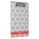 Grey White Moroccan #5 Coral Red Name Monogram Clipboard