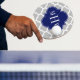 Grey White Moroccan #5 Navy 3 Initial Monogram Ping Pong Paddle