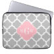 Grey White Moroccan #5 Pink 3 Initial Monogram Laptop Sleeve