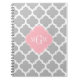 Grey White Moroccan #5 Pink 3 Initial Monogram Notebook