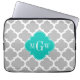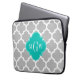 Grey White Moroccan #5 Teal 3 Initial Monogram Laptop Sleeve