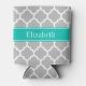 Grey White Moroccan #5 Teal Name Monogram Can Cooler