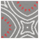 Modern fabric design featuring a seamless pattern made of geometric shapes in red and white on a grey background.