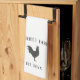 Celebrate life on the farm with this cute personalised kitchen towel featuring your family name or farm name and year established in dark charcoal grey lettering accented with a chicken illustration.