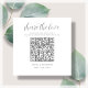 Grey and white share the love QR Code cards. Place these small cards at your wedding reception tables so guests can scan to upload the photos they took at your wedding reception to your album or social media. To generate a new QR code on the design, add the URL of your online wedding album or social media handle in the area provided, using the "personalise" feature. A brand new QR code will then be added to to the design.