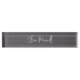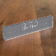 Elegant desk nameplate features your name, title, or choice of personalisation in modern white hand scripted cursive lettering on a neutral grey background.