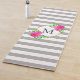 Grey White Stripes Chic Hot Pink Floral Monogram Yoga Mat