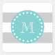 Grey White Stripes Pattern, Teal Monogram Square Sticker