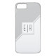 Grey and white geometric iPhone 8/7 Case with monogram. The front includes two diagonal stripes one grey and one white that separate the card in two triangles. A white square is on the centre with your monogram.