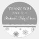 Baby shower favour tag sticker for christmas baby shower or winter baby shower in elegant and modern dark charcoal grey and white festive snowflakes pattern. Customisable with your own text, contact us for a colour change. The perfect way to decorate your baby shower favours or as envelope enclosures.