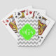 Grey Wht Chevron Lime Quatrefoil 3 Monogram Playing Cards