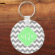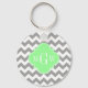 Grey Wht Chevron Mint Quatrefoil 3 Monogram Key Ring