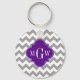 Grey Wht Chevron Purple Quatrefoil 3 Monogram Key Ring