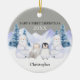 A baby's first Christmas ornament with a winter scene and woodland baby animals. Customise the year and the baby's name. The back and front of the ornament are the same.