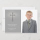 A stylish Christian photo card in grey with cross and glowing effect. Shown as a Communion thank you card, but can be customised for any religious event including baptisms, christenings, first holy communions or confirmations.