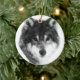 Canis lupus animal portrait in black and white. Attractive round ceramic ornament for anyone. You can transfer this design to another product of your choice, just use an option to the right of this description.