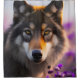 Grey wolf in purple flowers shower curtain