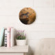 Grey wolf standing on a rock in the forest large clock