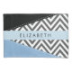 Elegant, stylish and sophisticated zigzag (chevron) pattern in grey and white colour with blue and black patches of colour. Modern and trendy gift, perfect for the zigzag lover in your life. Personalise by adding your name, nickname, monogram or initials.