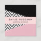 Elegant, stylish and sophisticated business cards with zigzag (chevron) pattern in grey and white colour with pink and black patches of colour. Modern and trendy design, perfect for zigzag lovers.