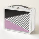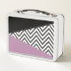 Grey Zigzag, Grey Chevron, Zigzag Pattern, Purple Metal Lunch Box