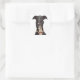 This fun canine sticker features a portrait of a beautiful black and white Greyhound pup highlighted against a crisp white background.
