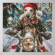 Greyhound Dog Riding Motorcycle Christmas Poster