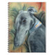 Beautiful greyhound notebook. Greyhound notebook with a pastel painting of my handsome blue greyhound Casey. The card is blank inside for your personalised message and this photo is available on other products. Artwork by Jayne Herbert. For more greyhound cards and gifts visit my Zazzle shop BlueDogAtDingDong.