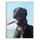 Notebokk with a photograph of a beautiful back greyhound on the front cover.