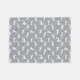 This greyhound fleece blanket design features greyhound silhouettes in a range of familiar greyhound poses. The white greyhound silhouettes are situated on a gray background.