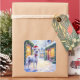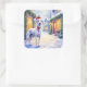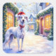 Greyhound Snowy Village Santa Hat Christmas Art Square Sticker