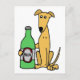 Funny and cool greyhound puppy dog has his paw around a bottle of beer in this cute fun original art design.